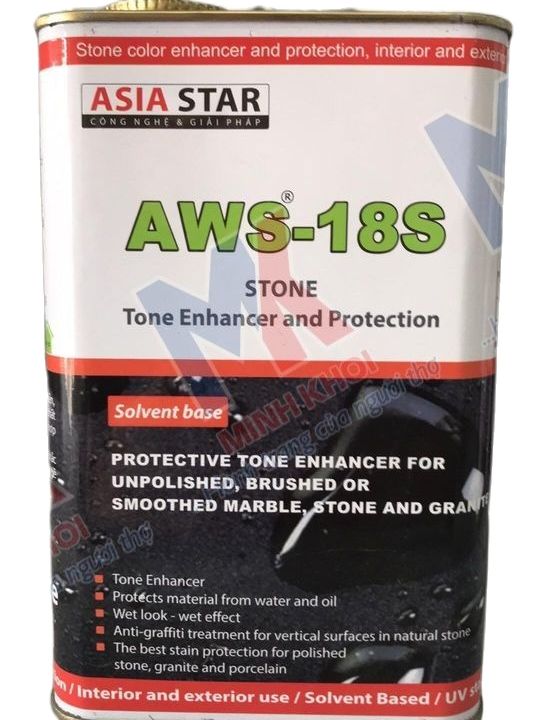 AWS-18S là dung dịch trong suốt không màu, tăng cường và khôi phục lại màu sắc tự nhiên, làm nổi bật hoa văn của đá, ngăn cản và bảo vệ bề mặt khỏi sự hấp thụ của nước, dầu và các chất gảy ố đá khác, hạn chế bám bẩn bề mặt. AWS-18S tạo hiệu ứng " wet- effect", bảo vệ bề mặt đá khỏi các vết bẩn nhưng không tạo màng.